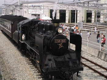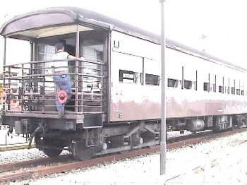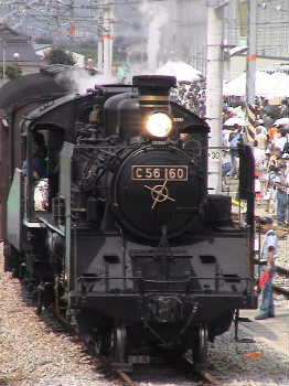 マイテ側から撮影。 突然汽笛が! でも車止めが。 車止めが外されました。 乗客?を乗せる前に デモ運転。ちょっとだけ煙が・・・。 ドレインを出しながらゆっくり前進。 この方はスタッフです。 場所をかえました。