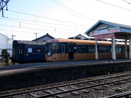 ![]() 新金谷駅停車中 近鉄16000系と富士山