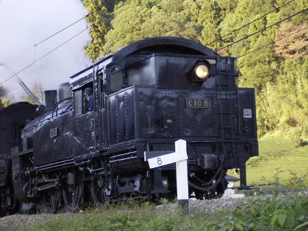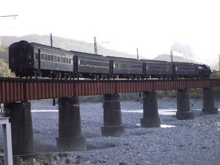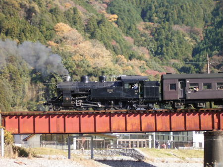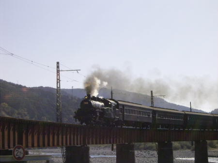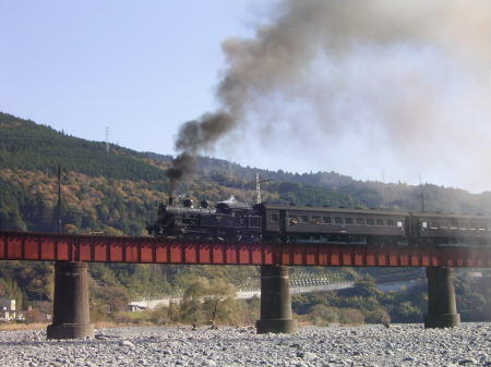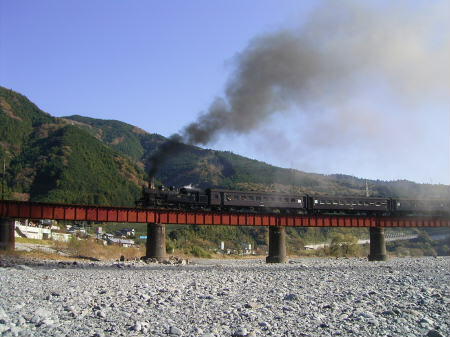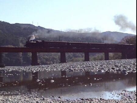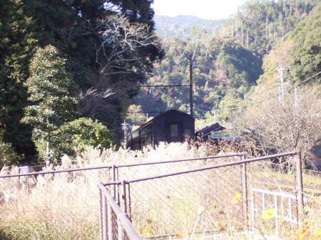 車掌の手旗に誘導されて戻ってきました ここまでもどりました すさましい煙を残して 登っていきました バック運転で金谷駅へ![]()